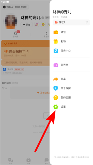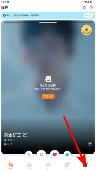 1、打開探探APP,點(diǎn)擊底部導(dǎo)航欄中的我,進(jìn)入個(gè)人頁面。