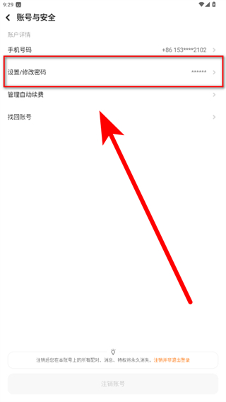 5、在賬號(hào)與安全頁面中,點(diǎn)擊設(shè)置/修改密碼選項(xiàng),按照提示完成密碼修改操作即可。