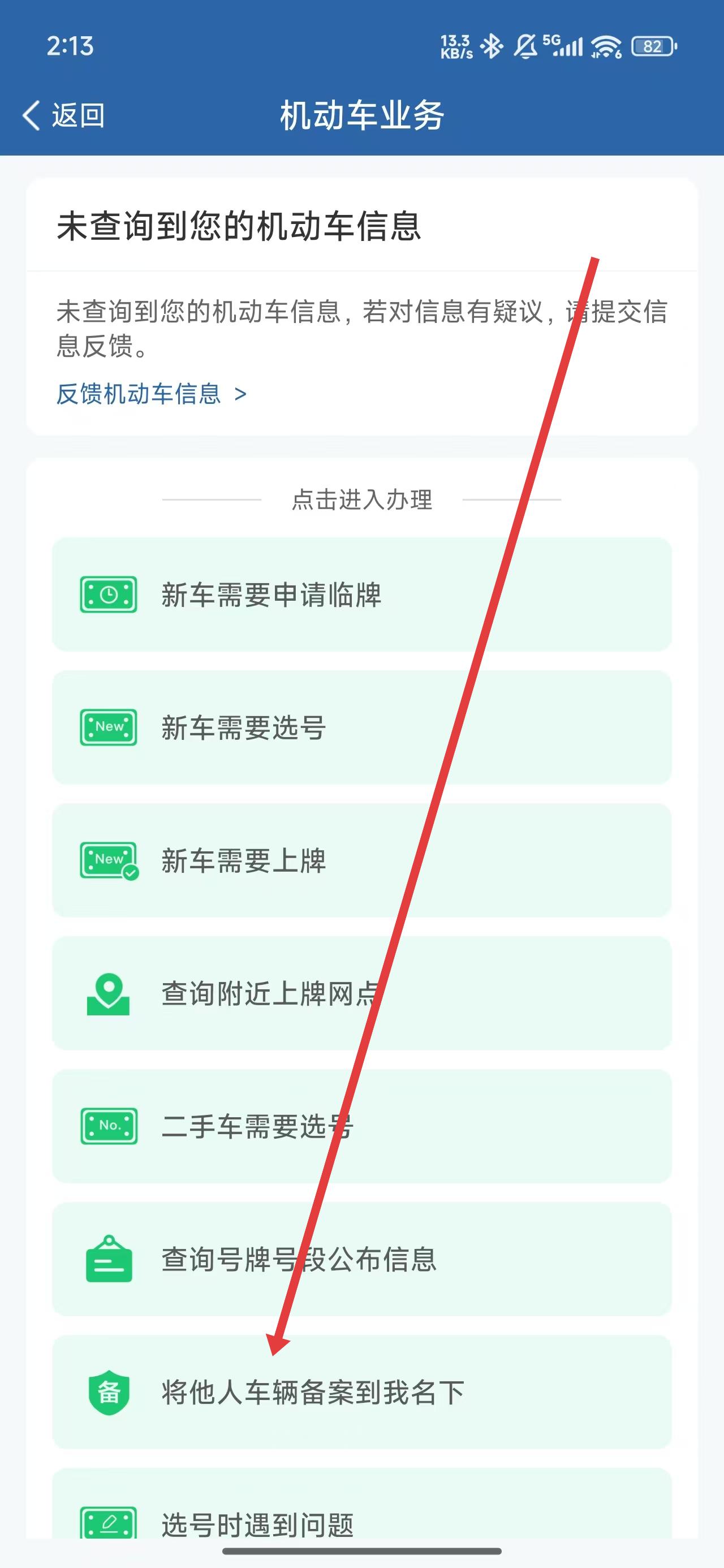 3、在機(jī)動車業(yè)務(wù)中,點擊將他人車輛備案到我名下業(yè)務(wù),開始辦理操作。