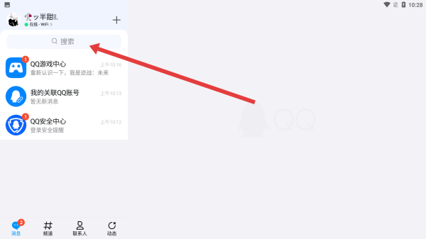 1、在qq的主頁面中,可以通過點擊搜索框進行搜索操作。