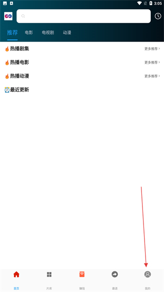 1、打開麻花影視APP,進(jìn)入到首頁(yè)內(nèi)點(diǎn)擊右下角我的圖標(biāo)。