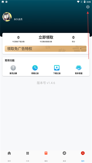 2、在我的頁(yè)面內(nèi),用戶需點(diǎn)擊右上角設(shè)置的功能按鈕。