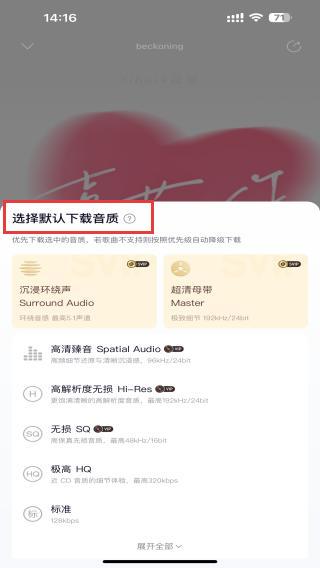 4、下載前,了解下載的音質(zhì)后,即可開(kāi)始下載音樂(lè)。