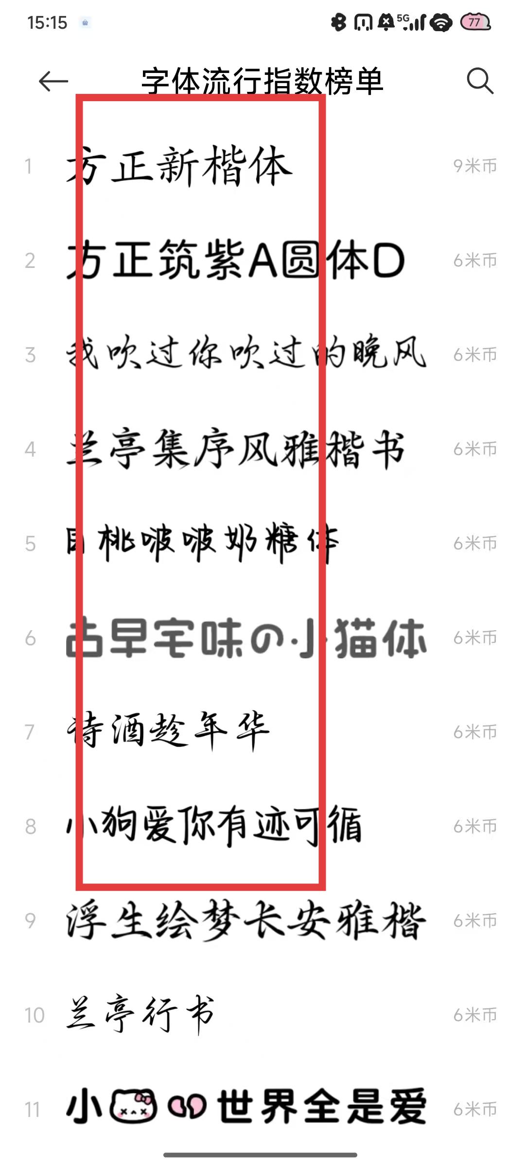 2、在字體選擇頁(yè)面,可以通過排行榜等方式,查看如方正新楷體等各種字體樣式,找到自己喜歡的字體。