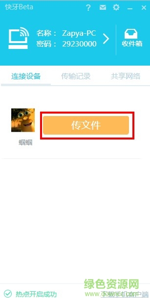 然后開啟快牙手機(jī)端點(diǎn)擊“連朋友傳文件”按鈕即可連接