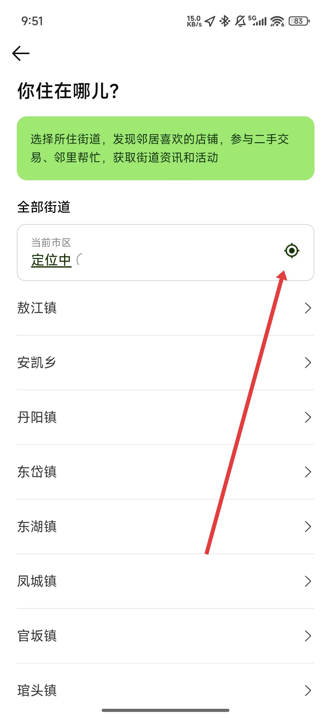 3、在定位位置頁面中,可以點擊箭頭指向處的定位按鈕,進(jìn)行精準(zhǔn)定位當(dāng)前位置。