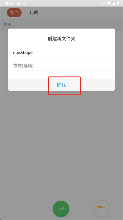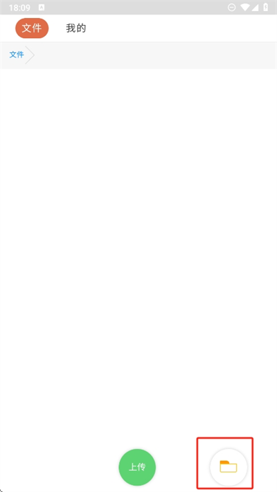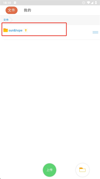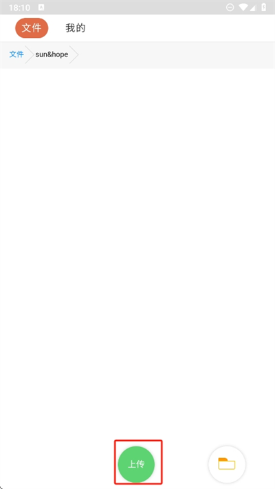 4、進(jìn)入文件夾后點(diǎn)擊上傳就可以上傳手機(jī)中的多種格式的文件,幫助你們能夠保存所有重要的東西。