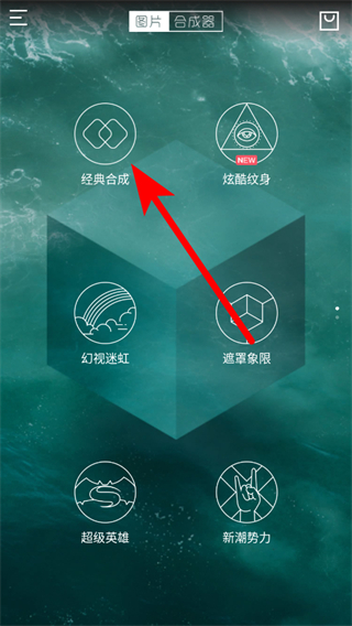 1、打開圖片合成器APP,在首頁點擊經(jīng)典合成選項,進入合成操作頁面。