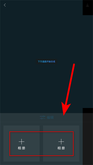 2、在合成操作頁面,點擊相冊選擇兩張需要合成的圖片。