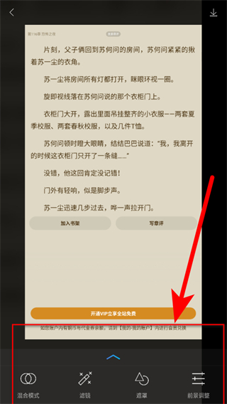 4、編輯完成后,利用頁面下方如混合模式、濾鏡、遮罩、前景調(diào)整等功能,對圖片合成效果進行設(shè)置,完成后按提示保存合成圖片。