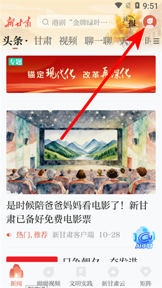 1、在新甘肅app首頁,點擊右上角個人頭像,進(jìn)入個人中心界面。