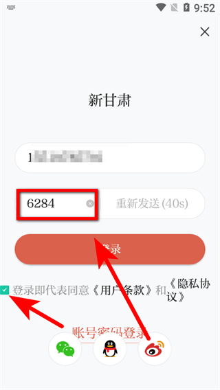 4、在輸入框中填入收到的驗證碼,勾選同意后,點擊登錄按鈕,即可完成賬號注冊操作。