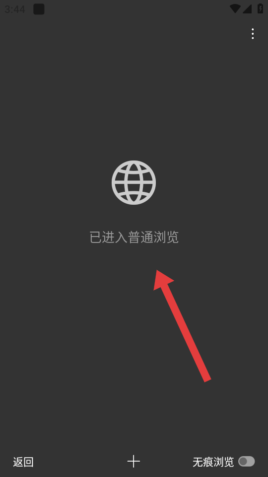 3、無痕瀏覽的開關(guān)關(guān)閉后,這個(gè)界面會(huì)顯示已進(jìn)入普通瀏覽,即成功關(guān)閉無痕瀏覽模式。