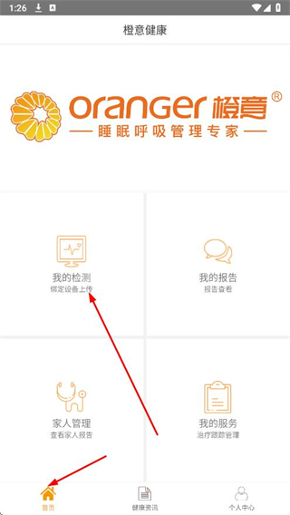 3、注冊(cè)成功后,進(jìn)入app首頁,可開始使用如我的檢測(cè)等相關(guān)功能。