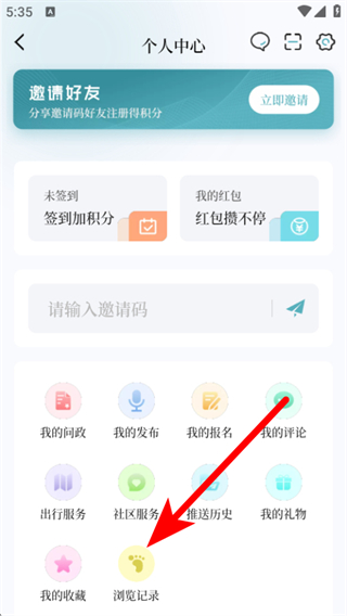 2、在個人中心的頁面,點擊瀏覽記錄,進入瀏覽記錄的頁面。