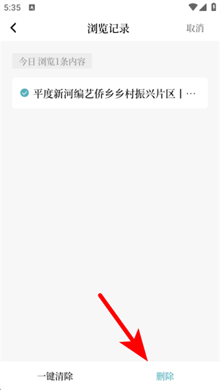 4、選擇要刪除的瀏覽記錄后,點擊刪除,完成瀏覽記錄刪除操作。