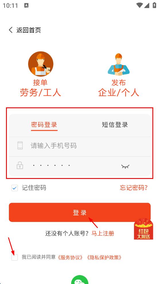 4、在登錄選擇界面,勾選已閱讀并同意相關(guān)協(xié)議,輸入手機(jī)號(hào)、密碼,點(diǎn)擊登錄即可。