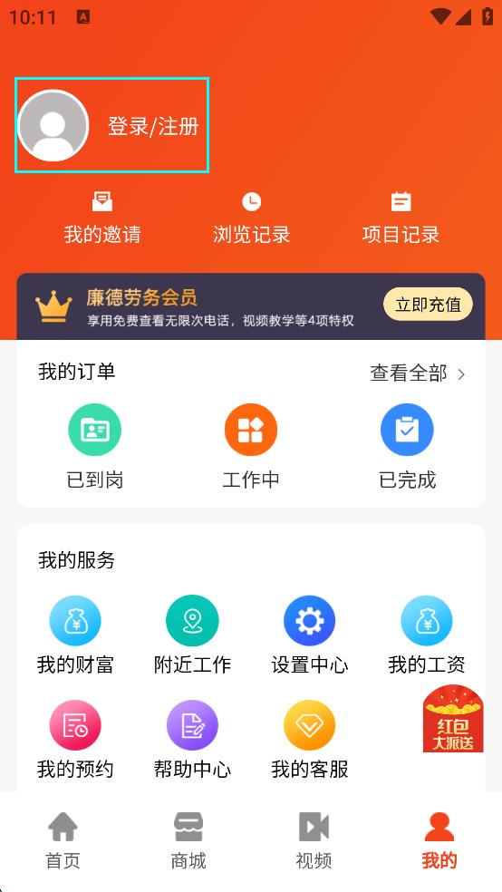 3、在個(gè)人頁面,點(diǎn)擊登錄/注冊,進(jìn)入登錄選擇界面。