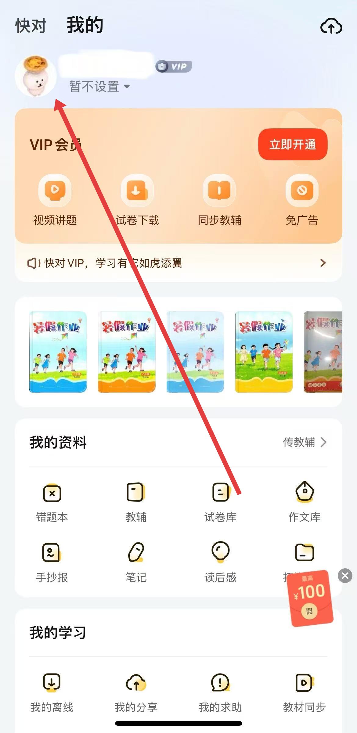 1、打開快對作業(yè)APP,點(diǎn)擊進(jìn)入我的頁面,找到頂端我的頭像下方暫不設(shè)置,點(diǎn)擊進(jìn)入設(shè)置年級。
