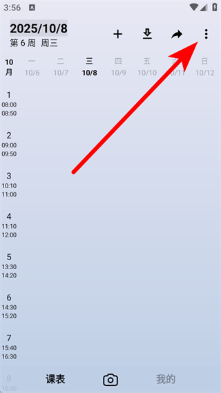 1、在wakeup課表的頁面,點擊右上角三點菜單圖標(biāo),彈出功能選項。