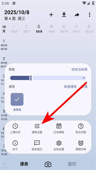 2、在彈出的選項中,點擊課表設(shè)置的按鈕,進(jìn)入課表設(shè)置頁面。