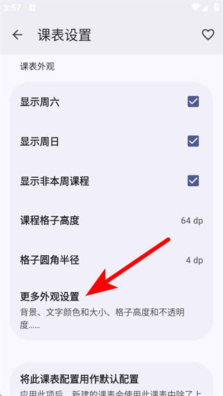 3、在課表設(shè)置頁面,點擊更多外觀設(shè)置,進(jìn)入課表外觀的頁面。