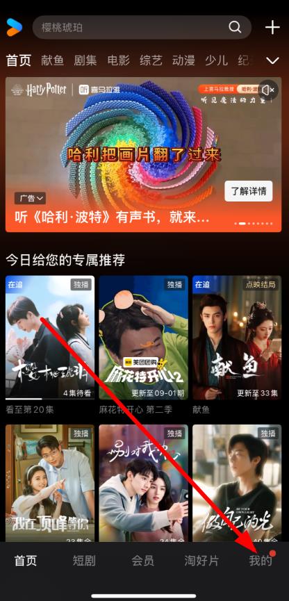 1、打開(kāi)優(yōu)酷APP,進(jìn)入首頁(yè)后點(diǎn)擊底部導(dǎo)航欄中我的選項(xiàng)進(jìn)入個(gè)人頁(yè)面。