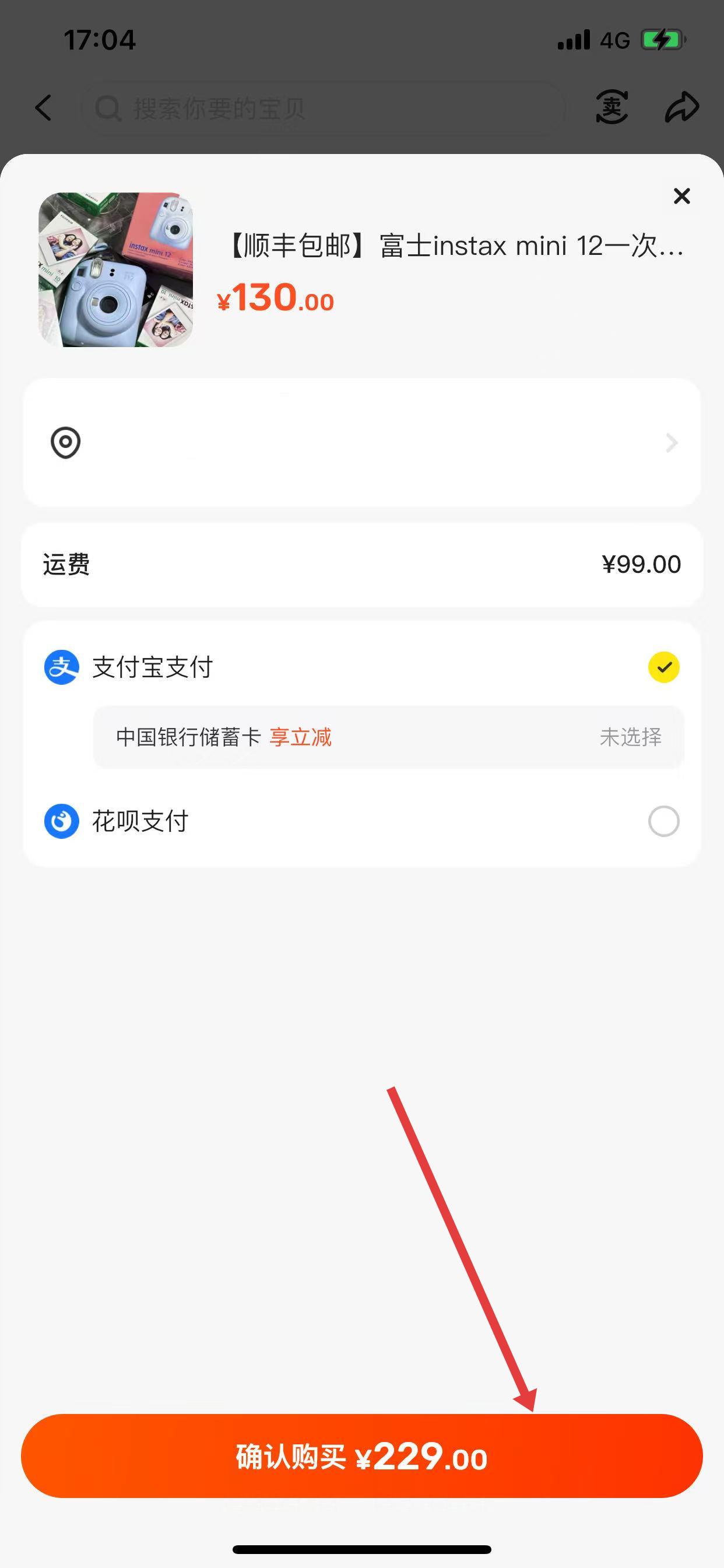 3、進(jìn)入確認(rèn)訂單頁面,選擇收貨地址,確認(rèn)運(yùn)費(fèi)等信息,選擇使用的支付方式,點(diǎn)擊確認(rèn)購買按鈕。