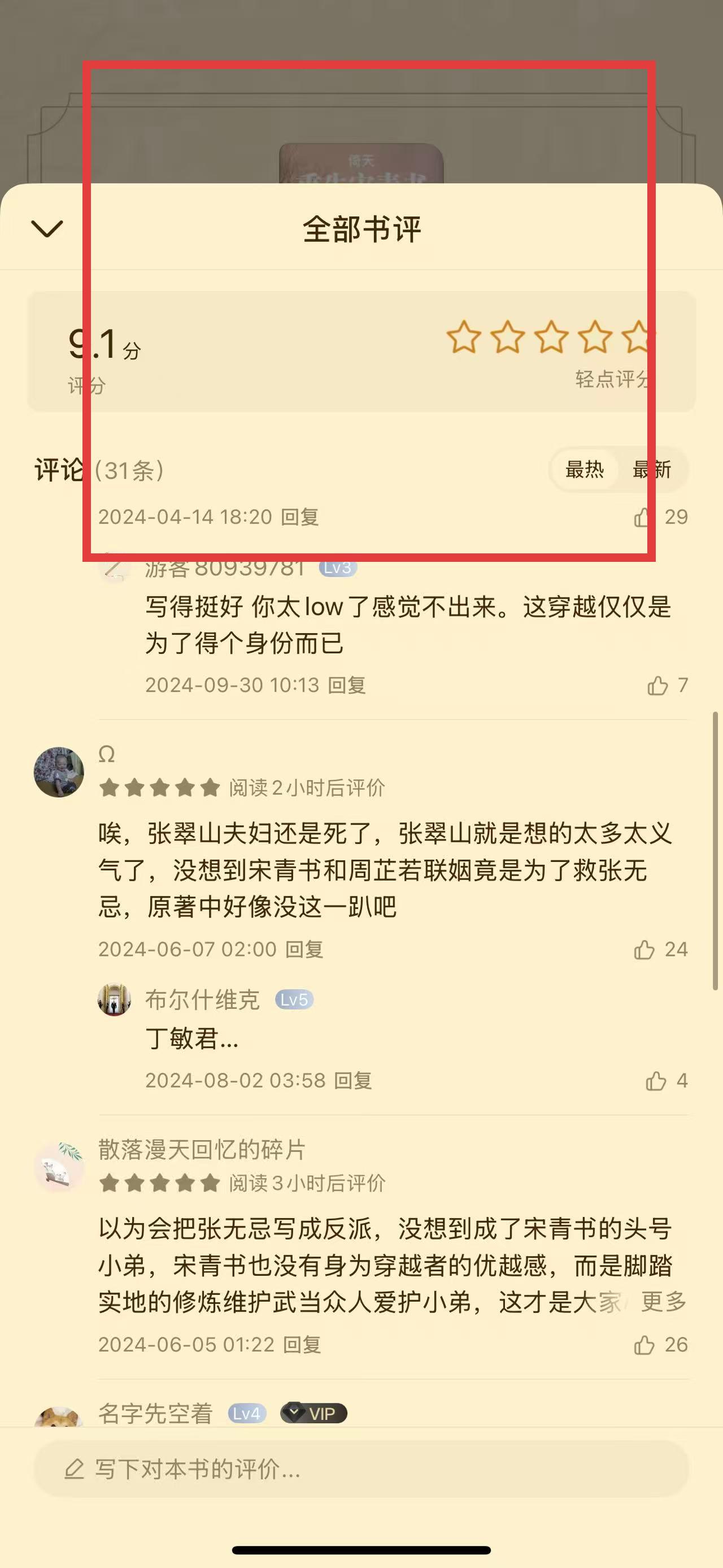 3、在評論區(qū)中,可以瀏覽其他讀者發(fā)布的書評,還能按最熱、最新來切換查看評論的排序方式。