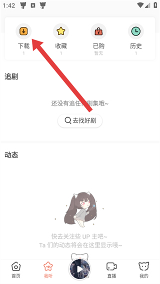 3、下載完成后,點(diǎn)擊底部導(dǎo)航欄的我聽,再點(diǎn)擊下載,即可查看已下載的音頻。