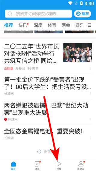 1、在新聞資訊app首頁,點擊下方視頻選項,進入視頻頁面。