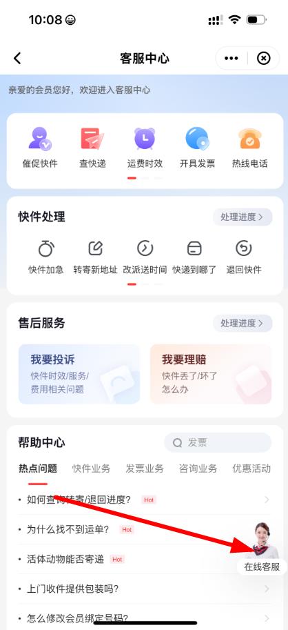 2、在客服中心頁面,滑動到頁面下方,點擊在線客服。