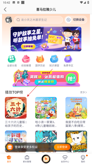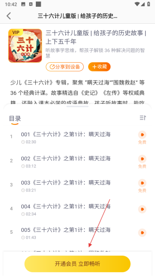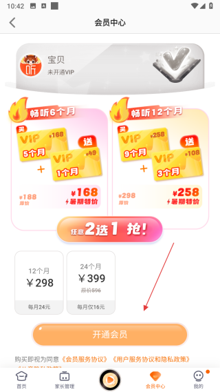 3、部分音頻需會員權(quán)限,點擊詳情頁底部開通會員立即暢聽,跳轉(zhuǎn)至?xí)T中心,選擇會員套餐,完成支付后,即可在綁定設(shè)備或APP內(nèi)使用喜馬拉雅少兒模式收聽音頻。