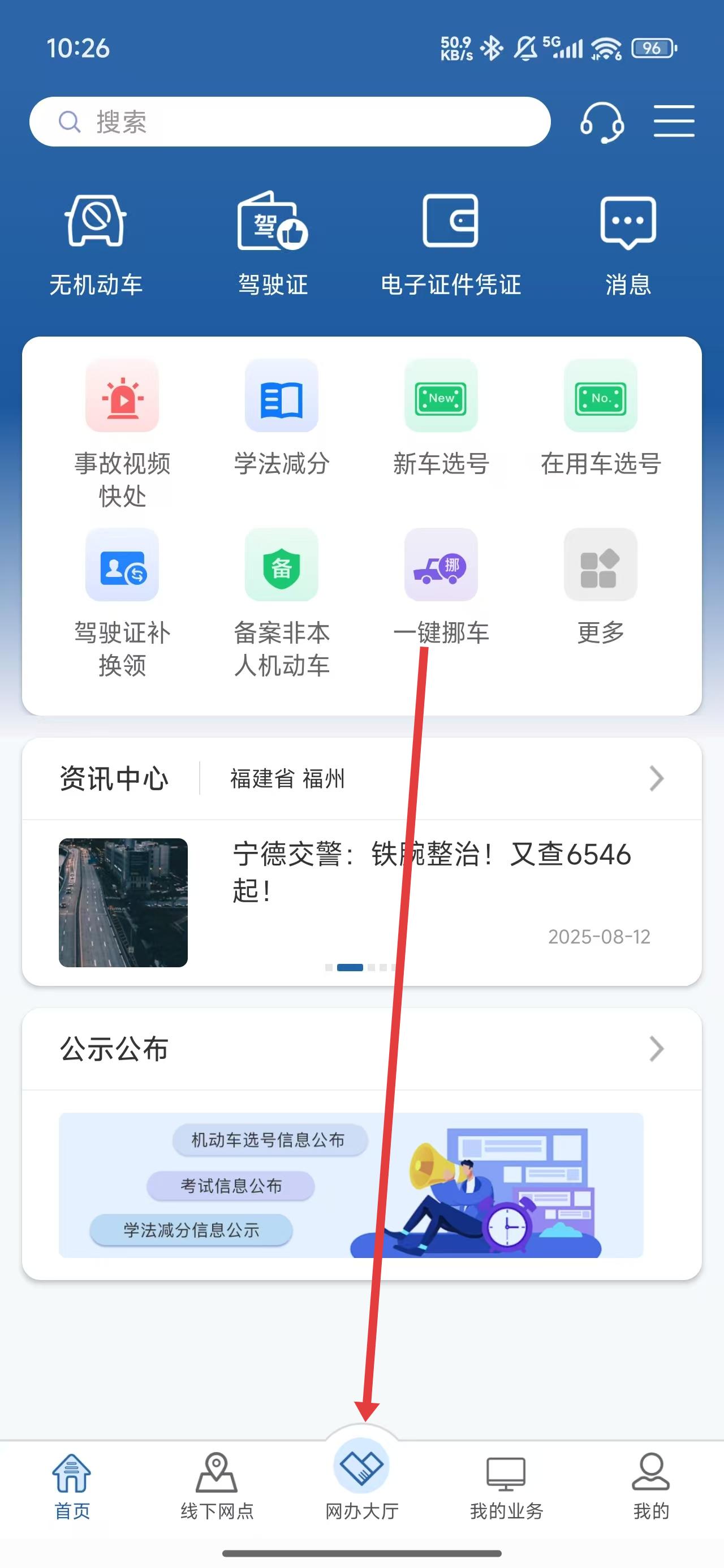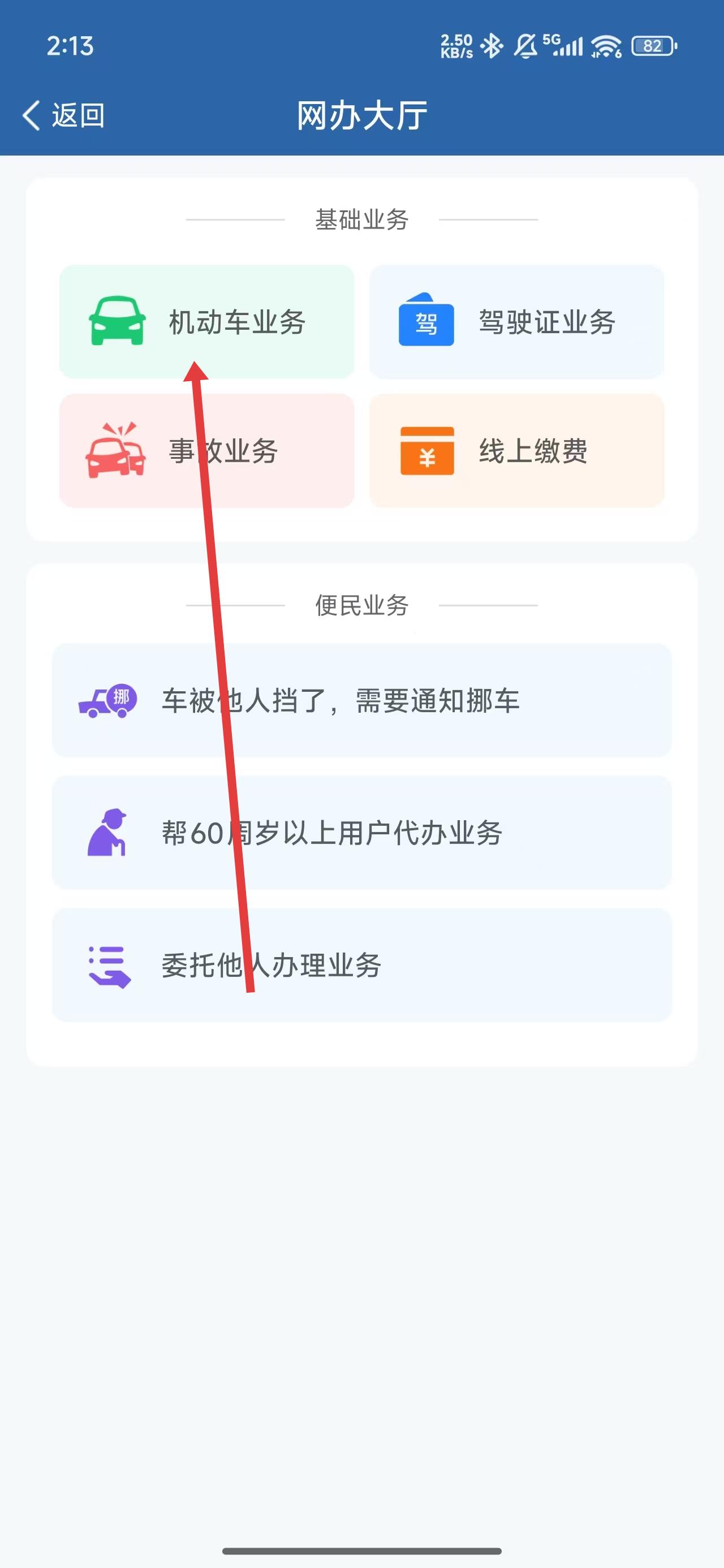 2、在網(wǎng)辦大廳里,可以點擊機動車業(yè)務(wù)選項,進(jìn)入查看。