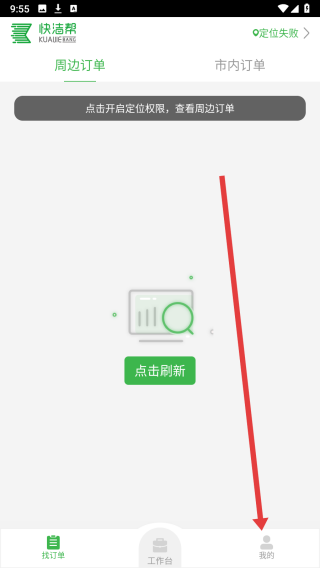 1、在快潔幫專員首頁中,可以點(diǎn)擊右下角我的按鈕,開始登錄操作。