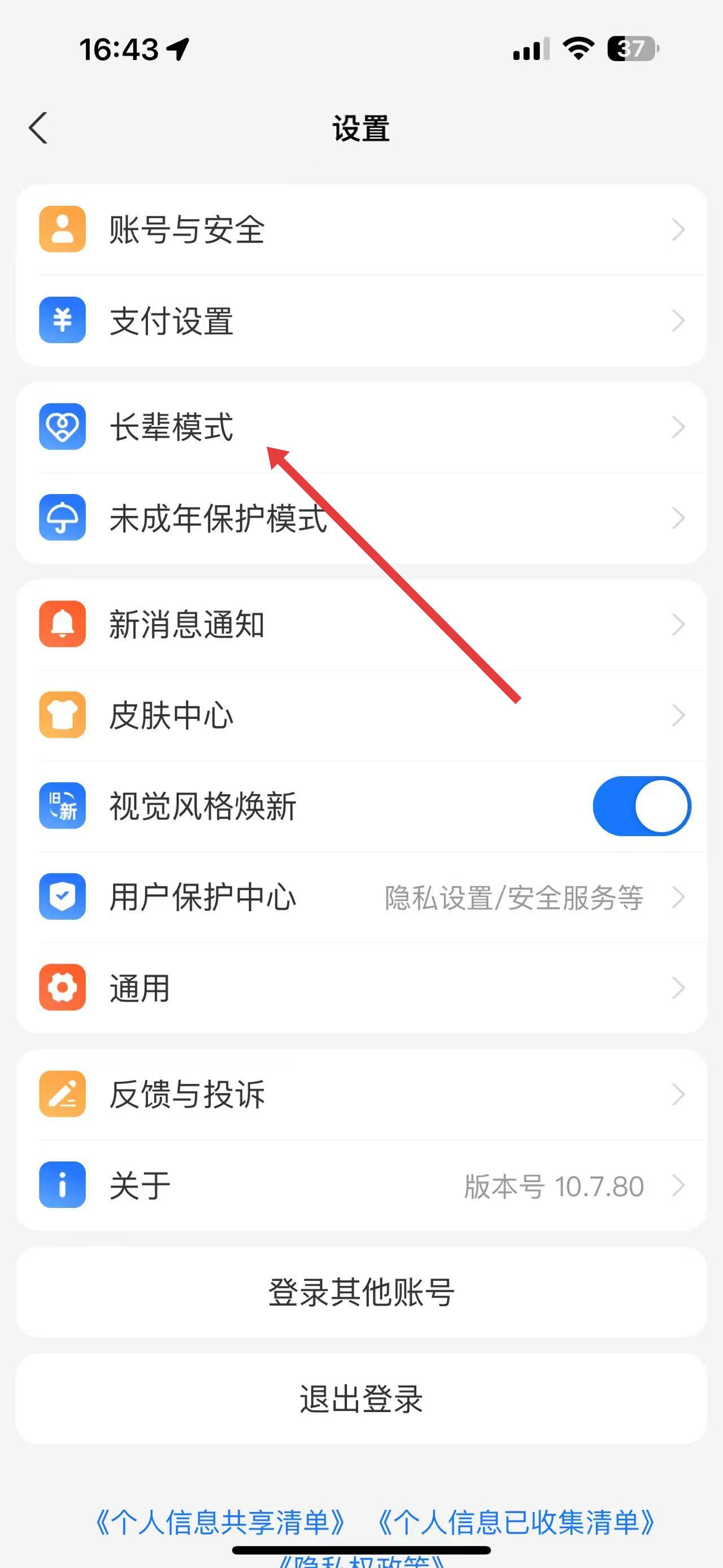 3、在設置頁面里,找到并點擊長輩模式選項。