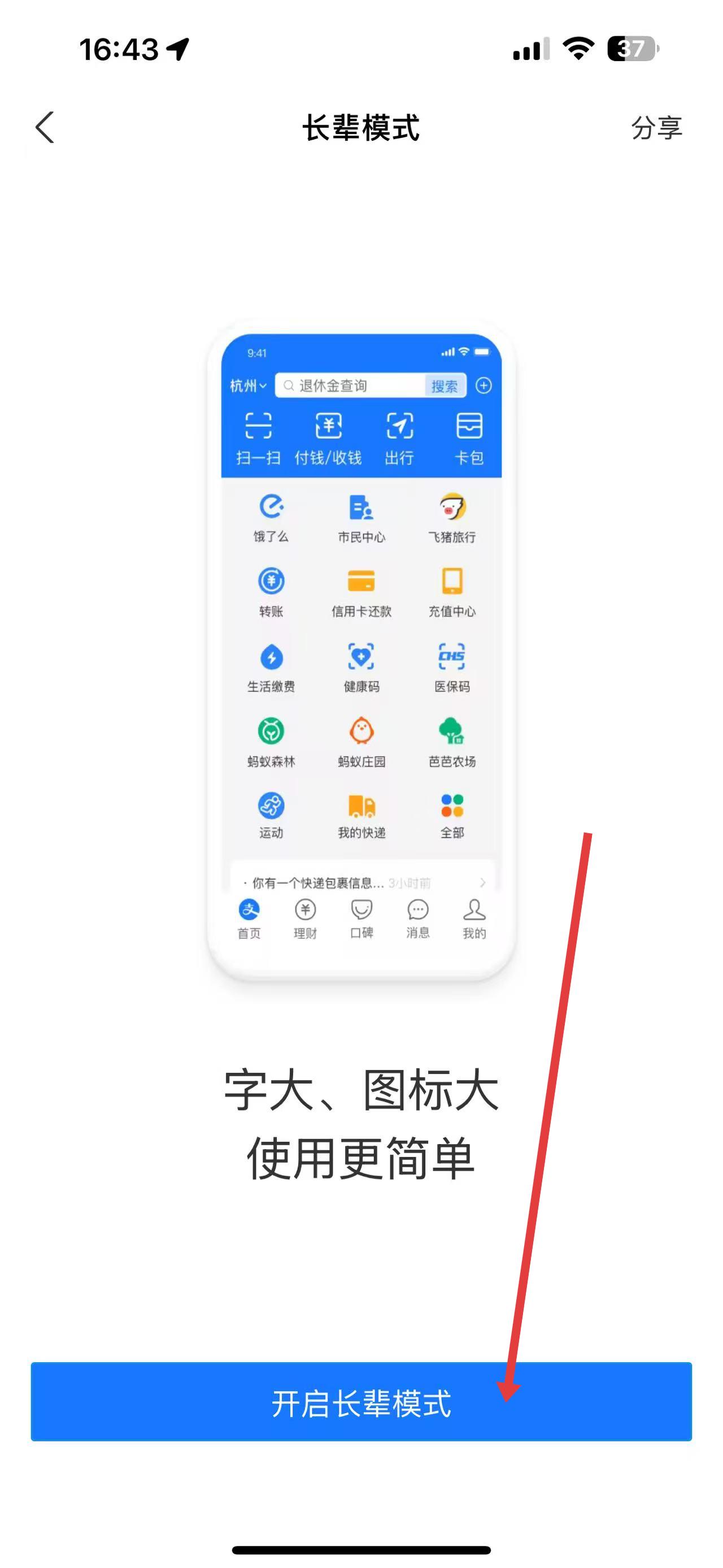 4、進入長輩模式頁面后,點擊開啟長輩模式按鈕,即可成功開啟。