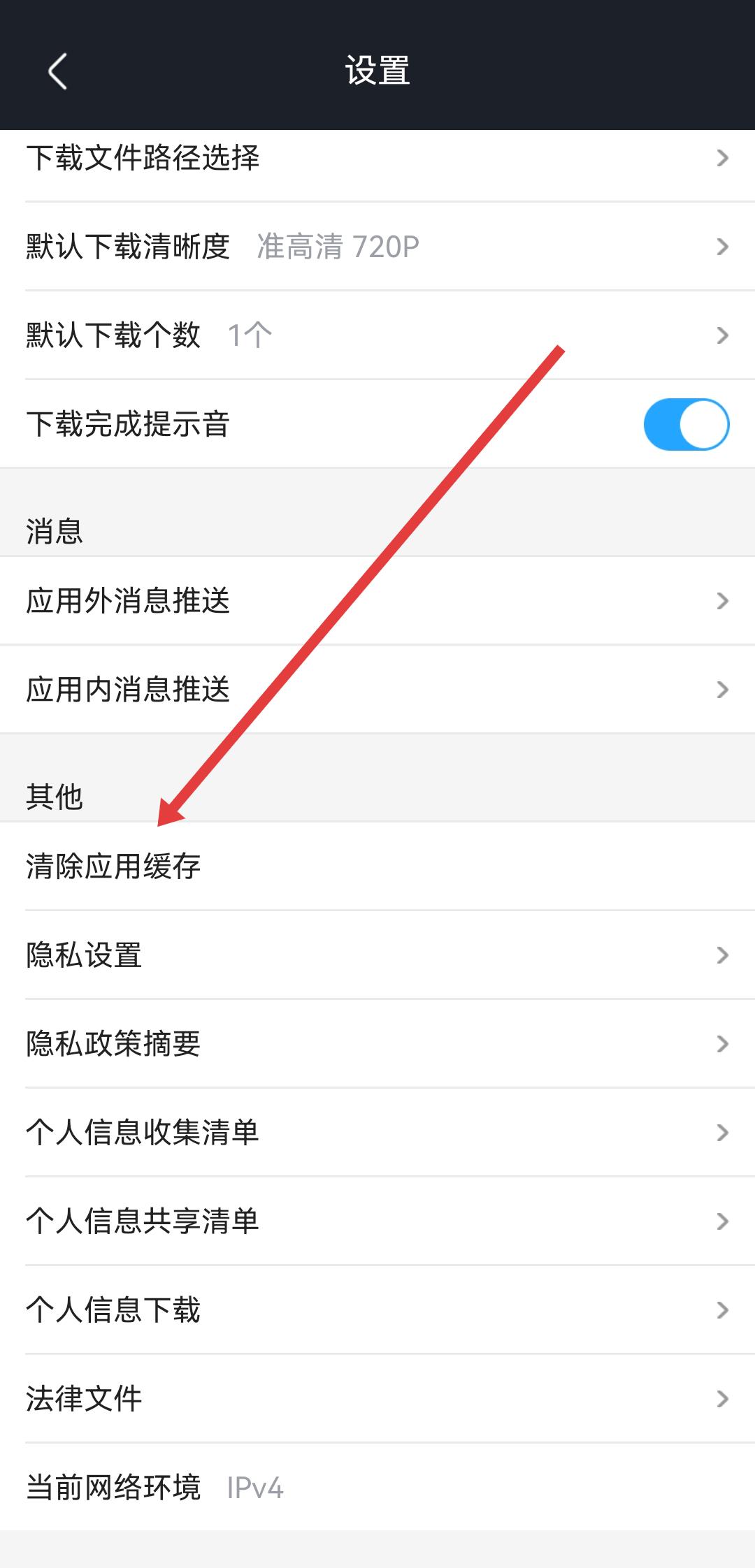 2、在設(shè)置頁面中,找到并點(diǎn)擊清除應(yīng)用緩存選項(xiàng),接著觸發(fā)緩存清理的流程。