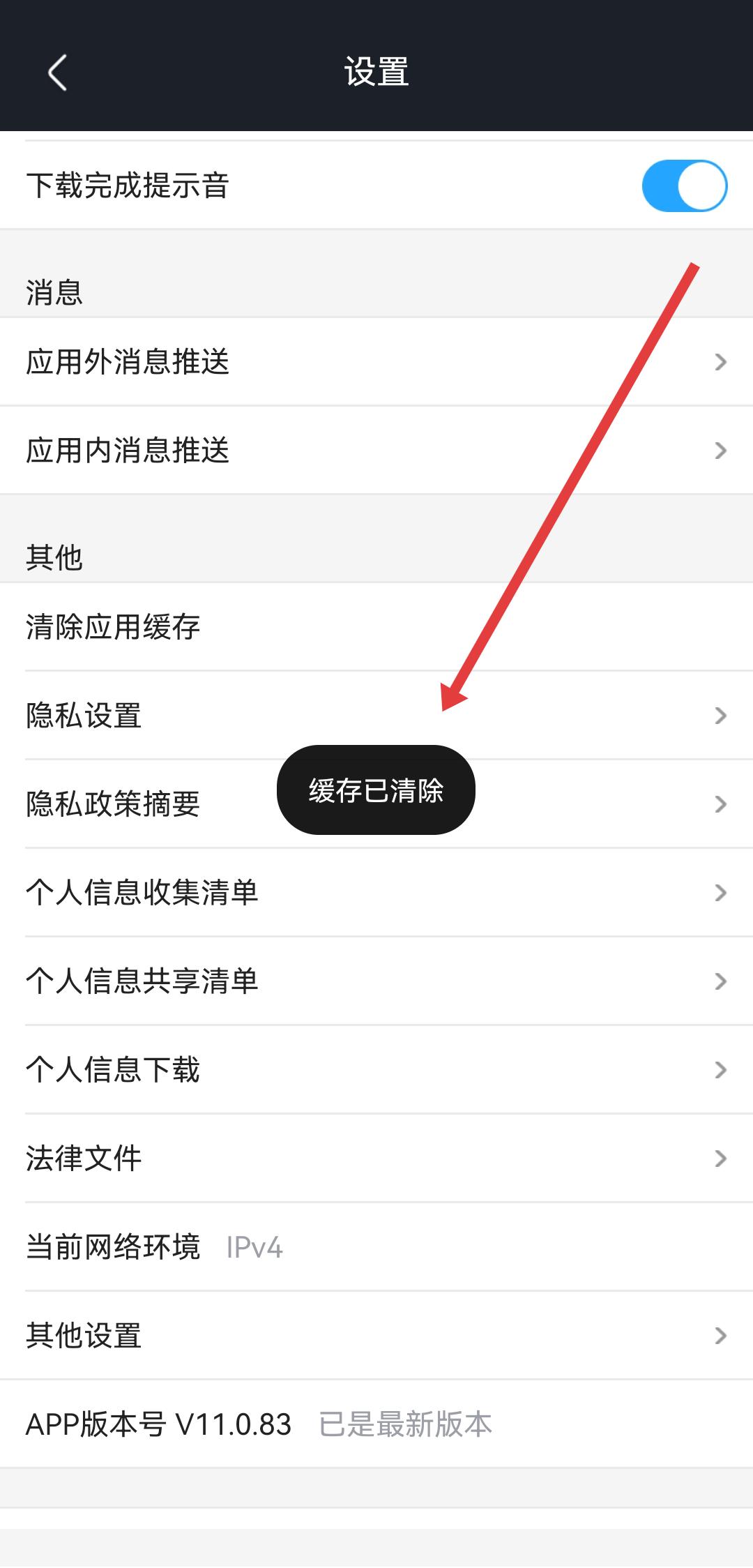 3、等待片刻,頁面出現(xiàn)緩存已清除的提示,這表示土豆視頻的應(yīng)用緩存已成功清理完成。