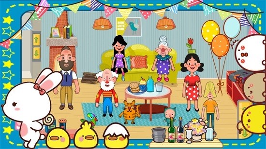 在托卡迷你小鎮(zhèn)家庭中扮演不同的角色,感受與眾不同的新鮮體驗(yàn),一切皆有可能!多個(gè)不同的房間,有起居室、廚房、庭院、家長(zhǎng)房間、兒童房間和一個(gè)浴室。家庭成員可完成諸多事項(xiàng),比如吃飯、睡覺、學(xué)習(xí)、彈琴和玩耍。這里也是由爸爸、媽媽、爺爺、奶奶、孩子們和寵物組成的幸福大家庭。