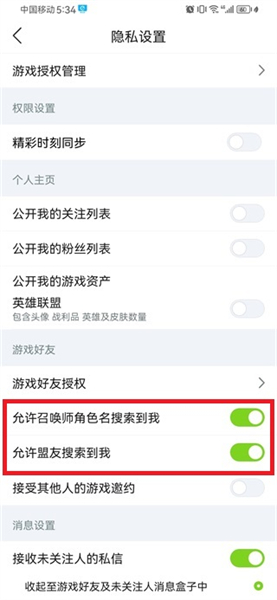 4.在隱私設(shè)置中,將“允許召喚師角色名搜索到我”的權(quán)限關(guān)閉即可。