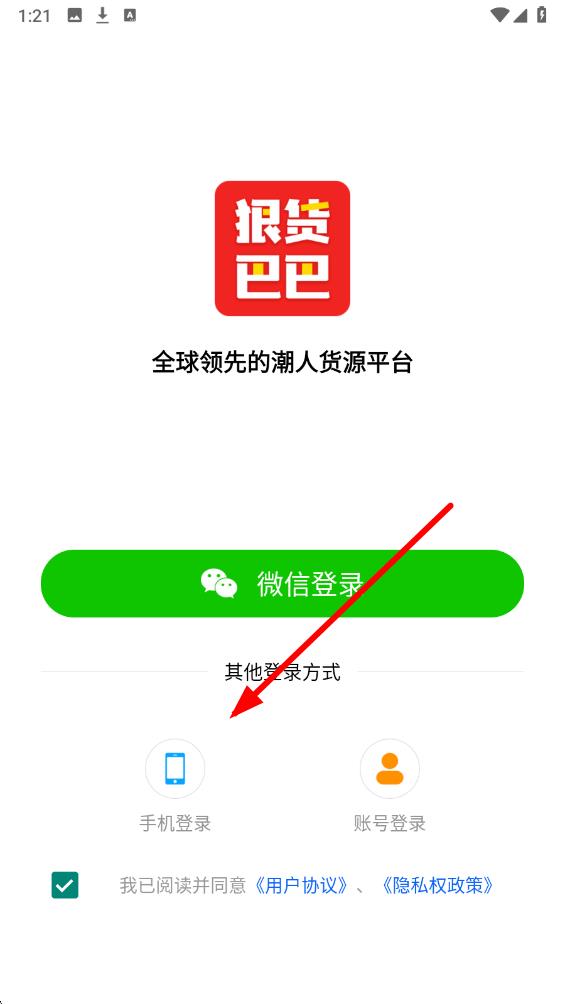 2、在登錄界面中點擊其他登錄方式下方的手機登錄選項,若沒有注冊過賬號使用此方式可完成注冊。