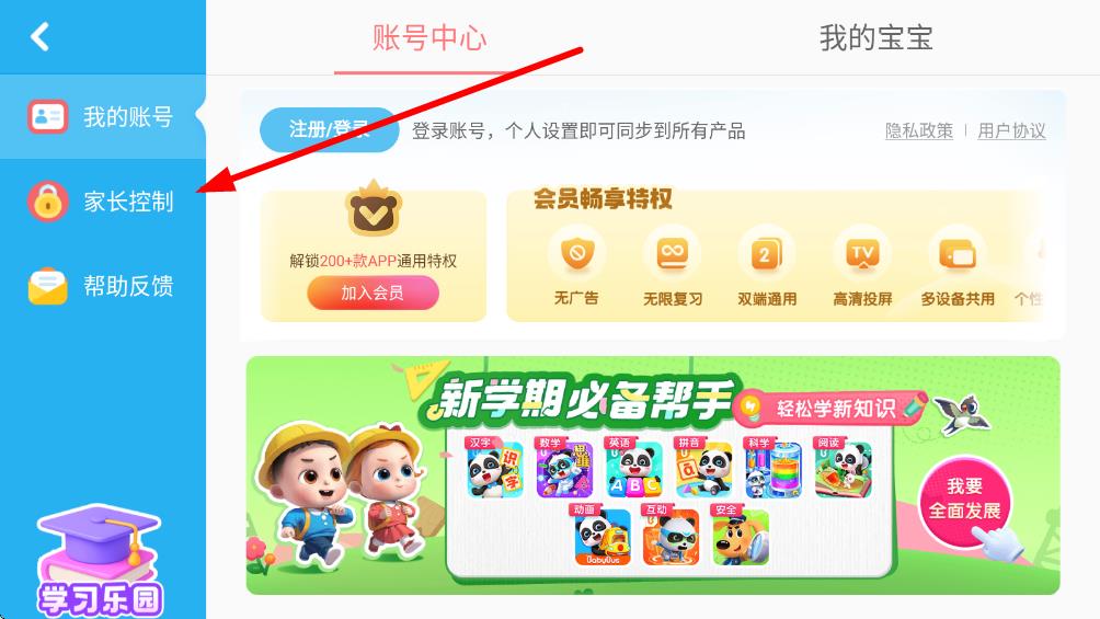 3、驗證通過進入賬號中心界面,點擊左側(cè)菜單欄里的家長控制選項,進入家長控制設(shè)置頁面。