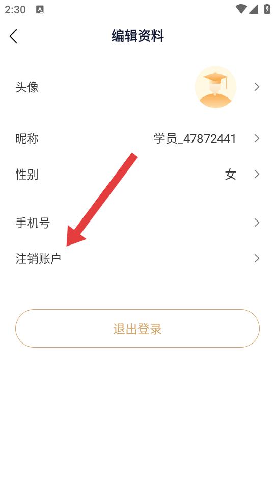 2、在編輯資料界面點擊注銷賬戶,進(jìn)入注銷賬號風(fēng)險提示頁面。