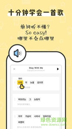 香蕉韓語安卓版讓你在看韓劇的同時順便學韓語、唱韓語歌,還有哪里不會點哪里的功能,快來和民咕咕一起學韓語吧!綠色資源網(wǎng)誠意推薦!