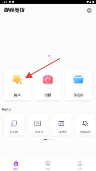 1、打開視頻剪輯大師APP,用戶需要在首頁點(diǎn)擊剪輯的按鈕。