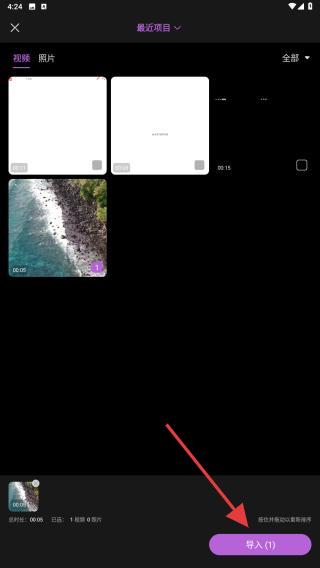2、在素材列表中勾選需要剪輯畫面的視頻,點(diǎn)擊右下角導(dǎo)入,進(jìn)入視頻編輯界面。