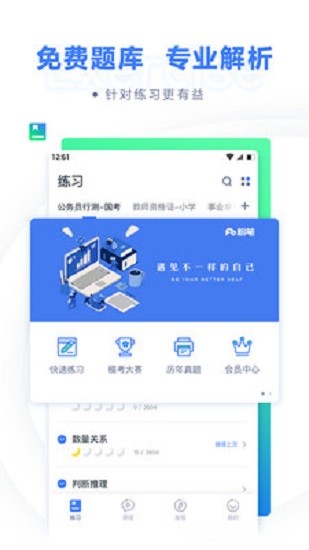 數(shù)百萬用戶正在使用的公考、事考、教師、司法、考研、建造、醫(yī)療、會(huì)計(jì)考試的提分利器,高品質(zhì)直播課+海量題庫(kù),公考、教師、司法、考研、建造和會(huì)計(jì)考試的好幫手。