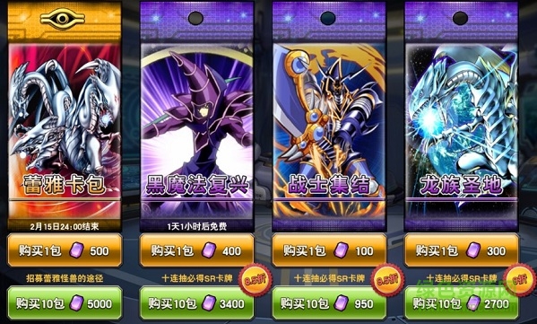 使用寶石購(gòu)買(mǎi)卡包可以更為精準(zhǔn)地收集心儀的卡組。無(wú)論是蕾雅卡包,還是戰(zhàn)士集結(jié),都能夠快速獲得該類(lèi)卡牌,使得該卡組的戰(zhàn)力成型。而龍族圣地卡包中包含了大量的龍族怪獸和地屬性怪獸,更有超稀有UR卡“青眼白龍”登場(chǎng),絕對(duì)值得偏愛(ài)這一卡組的玩家嘗試。