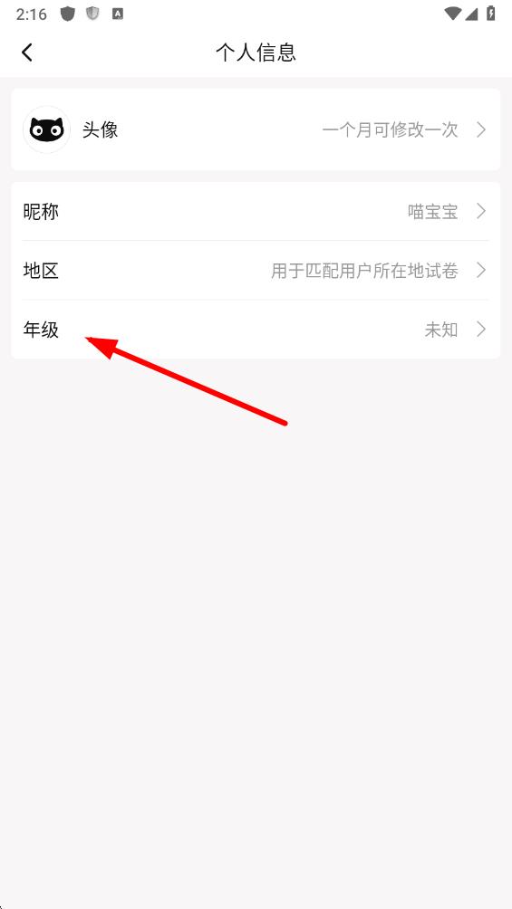 3、在個(gè)人信息頁面里,找到年級選項(xiàng)并點(diǎn)擊。